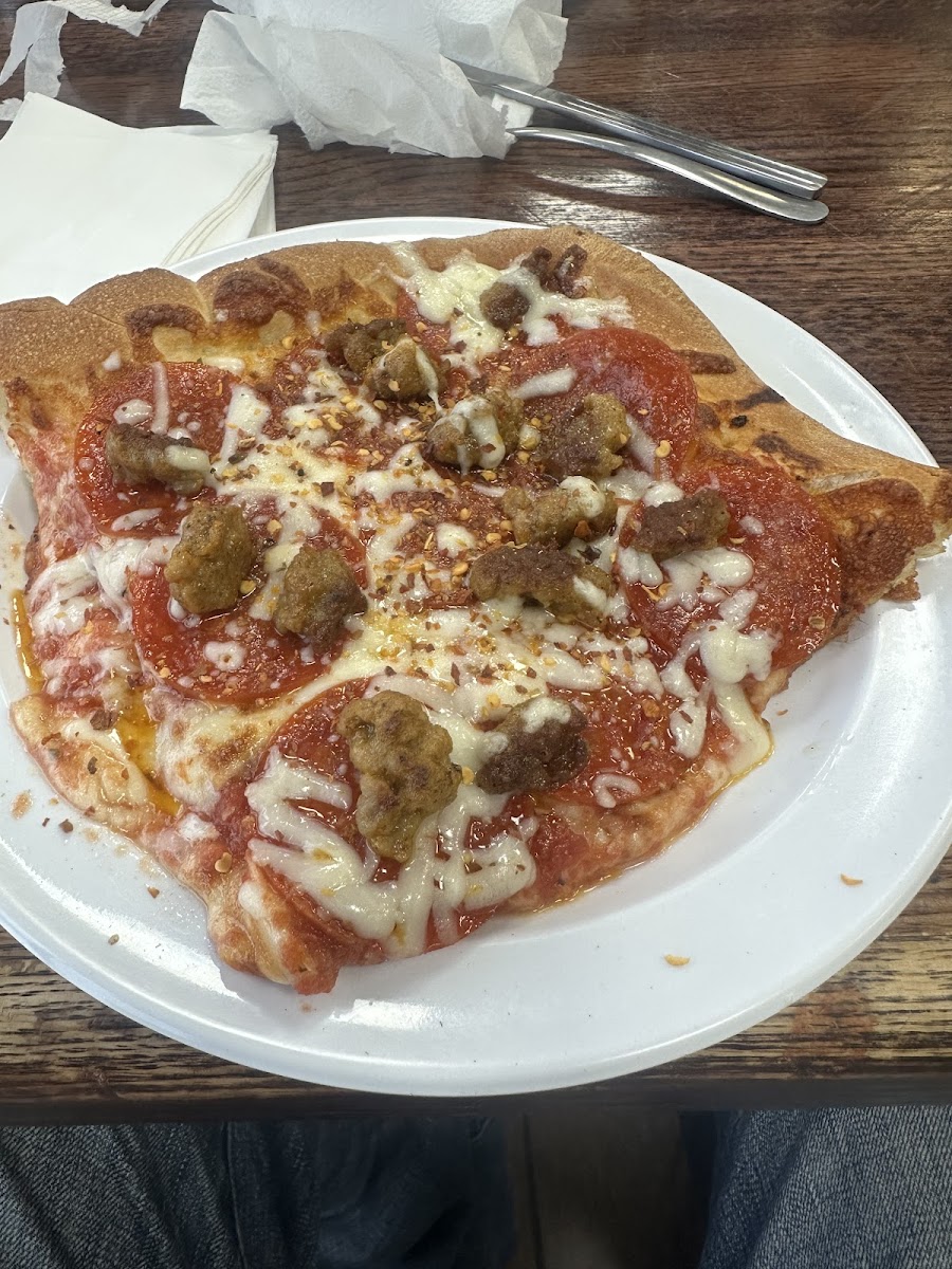 Had a slice with sausage x pepperoni. It was delicious..Came in on Dec. 2nd 2025 around 1:25pm